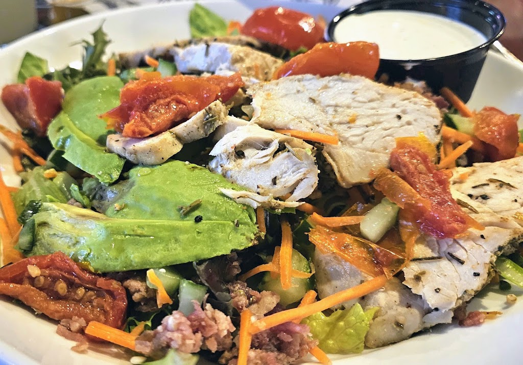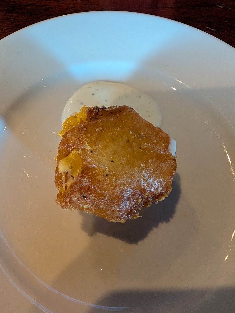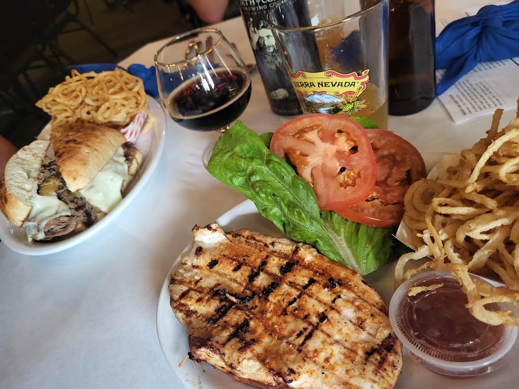 We ordered cheese curds, the Inverter, and the bacon and fajita chicken salad. We had Athletic NA beer and Stella Artois, and a dirty martini. Couldn’t be happier with the food, which was cooked to perfection (both burger and chicken). The curds were lightly battered with great flavor and pull. After a long flight this is a great place to enjoy the food, ambience, and incredible service.