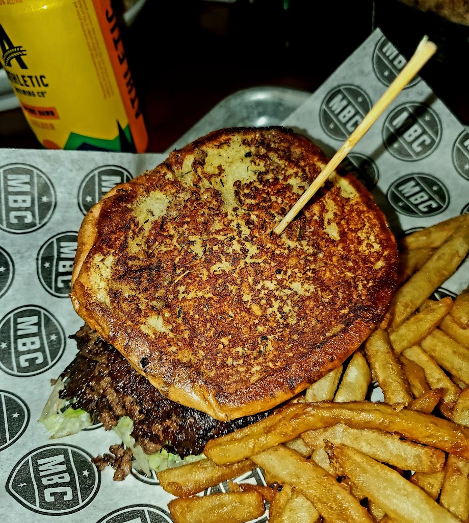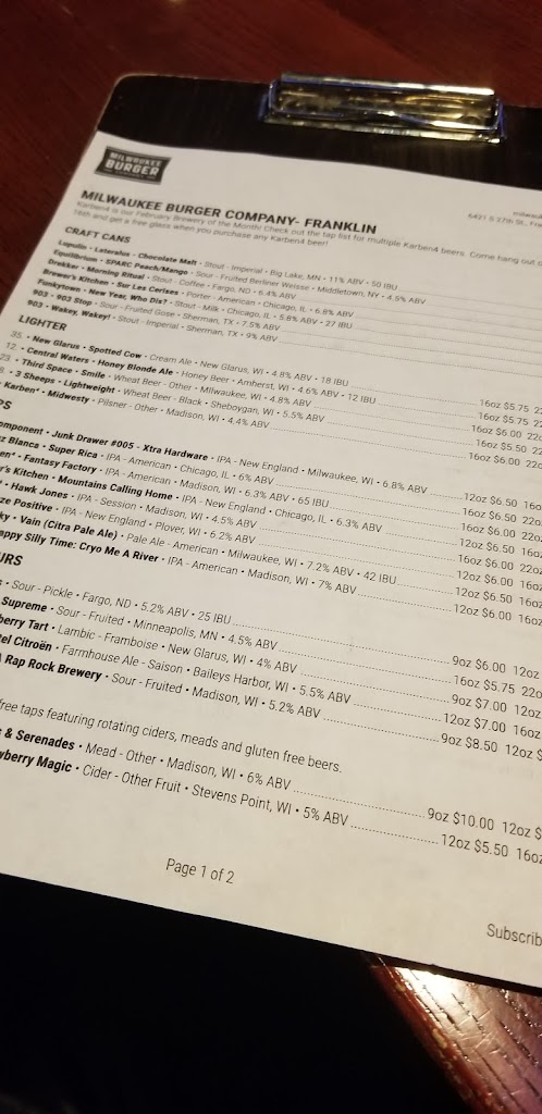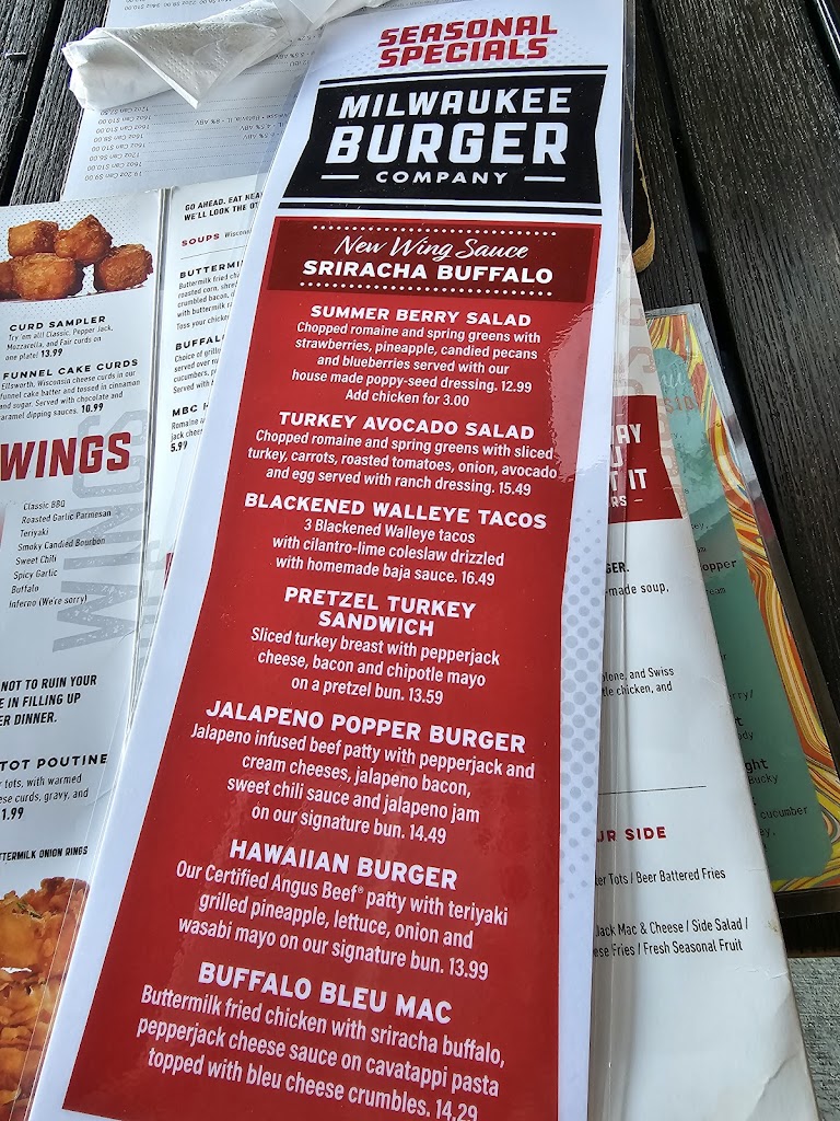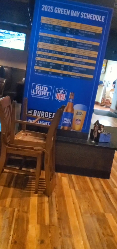 Milwaukee Burger Company is worth a visit. A short 10 to 15 minute ride from Billy Mitchell Field it’s a great place to watch sports. They have outside as well as inside seating. There is a nice bar area. There are plenty of TVs so it's easy to watch the game from any location. I was there on a Thursday evening and there was a football game as well as the Brewers baseball game on different TVs. There was a host that was energizing the crowd during lulls in the game. Games and prizes were available.