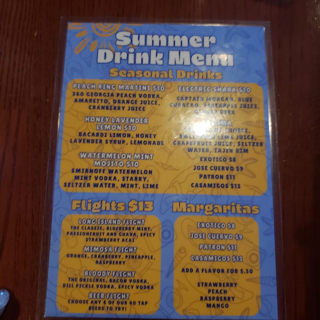 Food was great, fair prices and cold drinks. I had a great time. Recommended