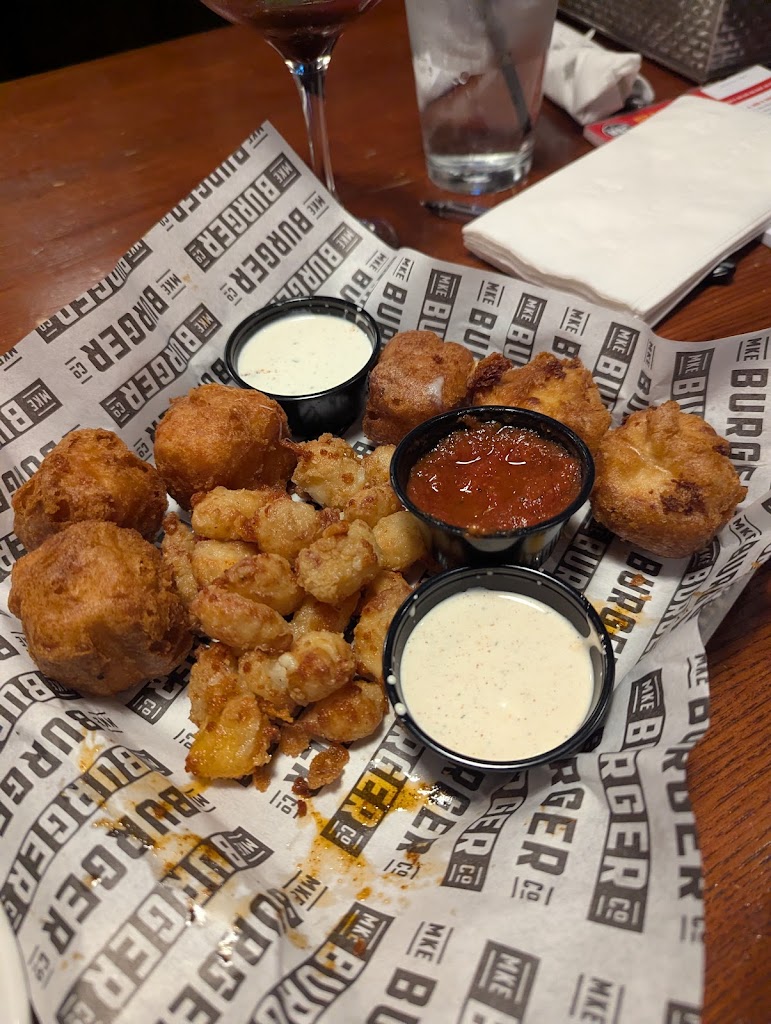 Fantastic! The cheese curds are huge and super cheesy! The onion rings were delicious also, and I had to eat my burger at home because I got full so fast on cheese curds! The servers were very attentive and friendly! Highly recommend! 10 stars 🌟