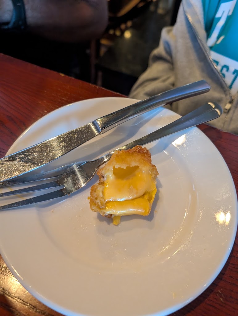 The food was very good, the curds were so large they were almost unmanageable in a good way. It was very busy and very loud.