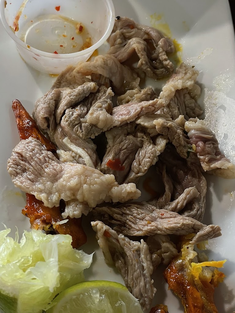 The Pho has a basic beef broth that is good, but the beef cuts were very fatty and uncooked. The uncooked beef was chewy and raw in the center which made it inedible for my liking. Thinner and better beef cuts against the grain would've cook better in the broth. Excessive fat on beef should be trimmed as uncooked fat is not enjoyable. Other than that other food was good.