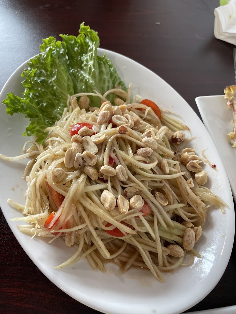 EGGROLLS/SPRING ROLLS/PAPAYA/CHICKIN WING LAAB/PORK BELLY ARE GREAT! DOWNFALL IS THEIR PHO, THE SOUP IS BLAND, NOODLES ARE SOGGY, HAD TO PUT ALOT OF EXTRA SEASONINGS, VEGGIES COULD BE MORE FRESH, TALAPIA FISH WAS OKAY. ORDERED PORK BELLY TOGO, BUT GOT SAUSAGES. SMH. BEEF BONE COULD BE MORE TENDER/PLEASE PROVIDE CUSTOMERS WITH AT LEAST A BUTTER KNIFE OR SOMETHING, COULD USE ALSO PROVIDE SOME LEGIT PEPPER INSTEAD OF DRY FISH SAUSE PEPPER. NOT ASKING FOR MUCH HERE.