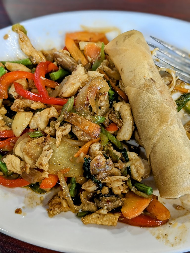 Food was very good. Hubby had ginger stir fry and I had pad sew ew. Spring rolls were excellent. Bill was 42 with tip. We had to ask for service but we weren't in a hurry. No atmosphere to speak of. It looks like it's more of a carry out with an afterthought of dining in. I'd go back but not often🤷