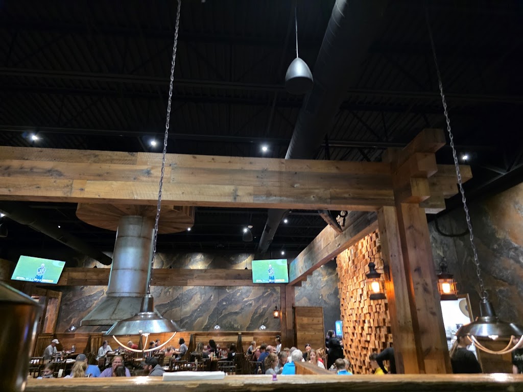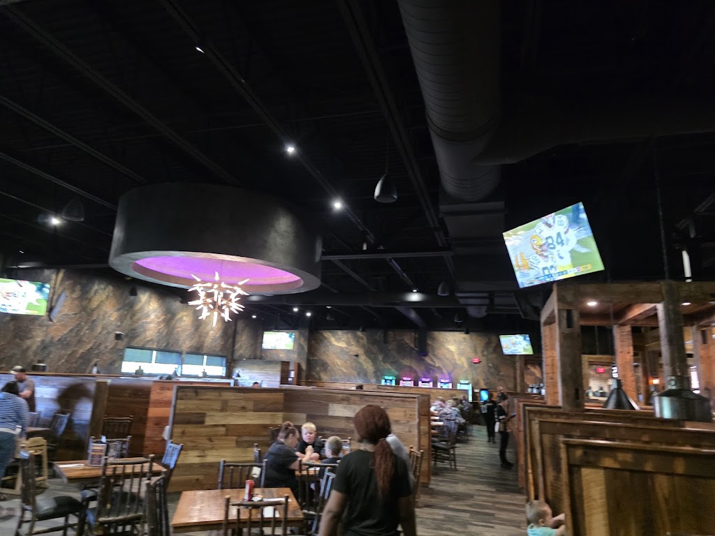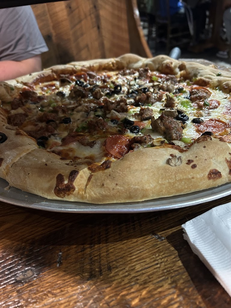 We went on a Thursday night for the buy one get one pizza. It was our first time here, and the atmosphere was very rustic with a family friendly feeling. We checked out the arcade room which was pretty big for a restaurant. The pizza was pretty good (maybe a little watery) and so was the appetizer and pumpkin drink. Our server Ashleigh was very sweet. Overall was a good experience and the food was enjoyable.