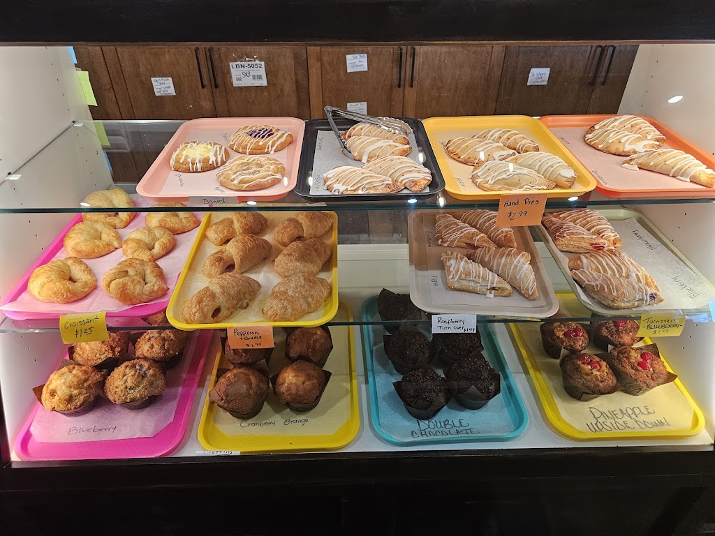 Hot and fresh, lots to choose from. Server was very sweet and attentive, and our coffee cups were always full and hot.