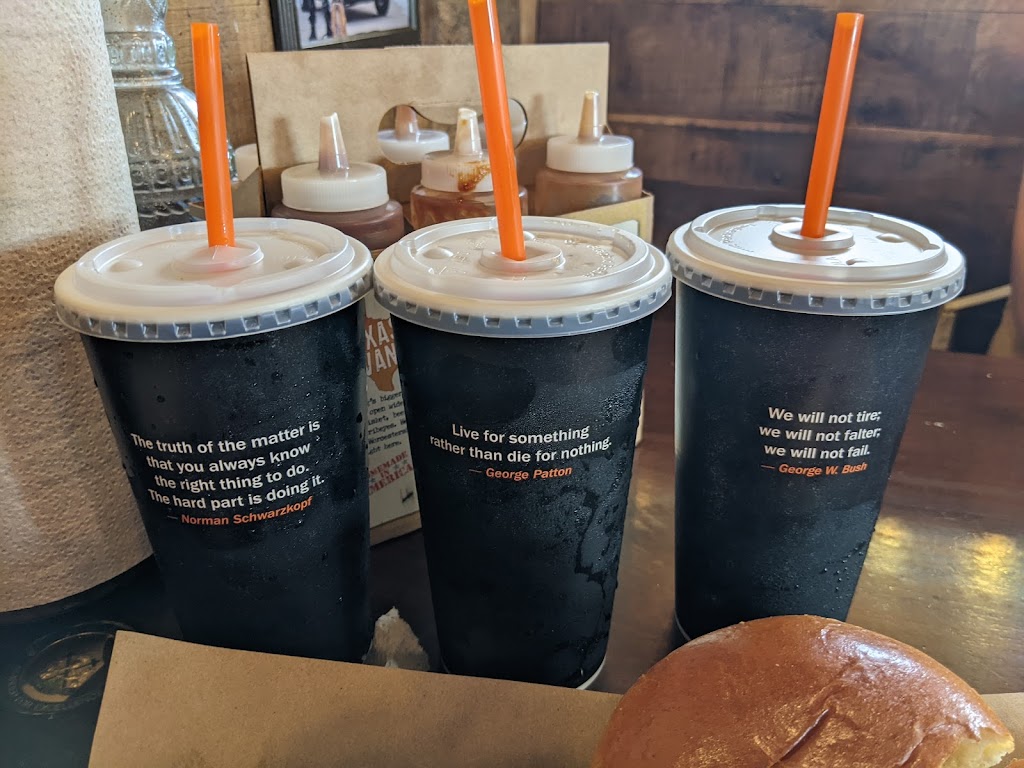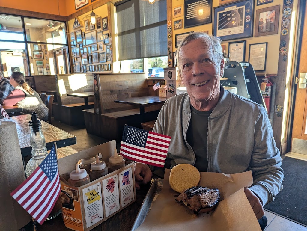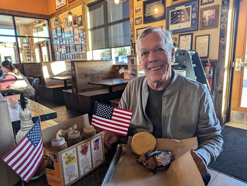 My sister in law took me here for lunch & it was great. She told us it is one of her absolute favorite places to eat. I love the Veteran honoring shown throughout the restaurant. The food was fantastic. We had a very short wait. Next time I will be getting a cold soda from the ice box in front that was a cool touch. The brisket was delicious & so were the fries! We decided to sit outside, we were by ourselves. A gentleman was sure to check on us right away & even chatted with us for a few minutes, which was so greatly appreciated. Thank you for awesome food & fantastic service.