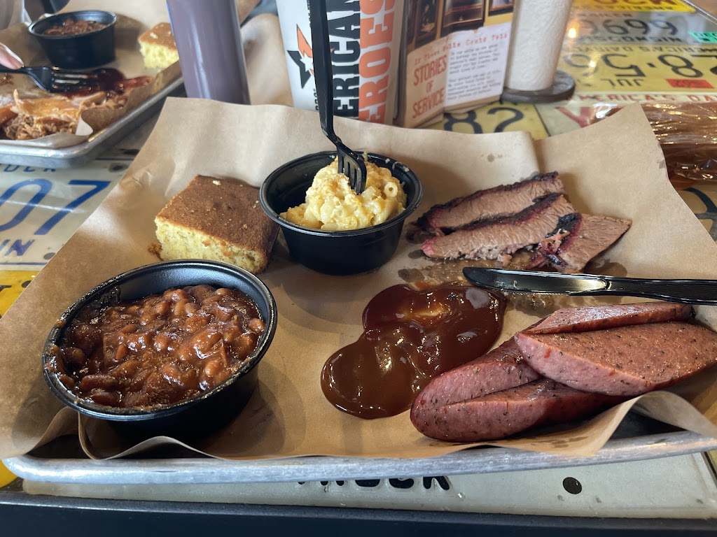 We’ve been here a couple times and always really enjoyed it! The service was fast, employees were kind, and the restaurant was very clean. This time our meat and cornbread were a little dry but still tasty. The mac and cheese and cream corn were hot and tasted good! I love all the sauce options on the table and the vinegar they all are excellent. We will definitely visit again.