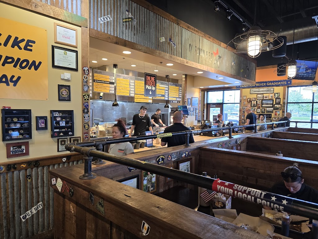 Their BBQ is pretty damn good, but what I really love is how they treat our service members and first responders. I love to come here for lunch on Fridays around noon and experience the whole restaurant rising for the national anthem. Nothing but respect.