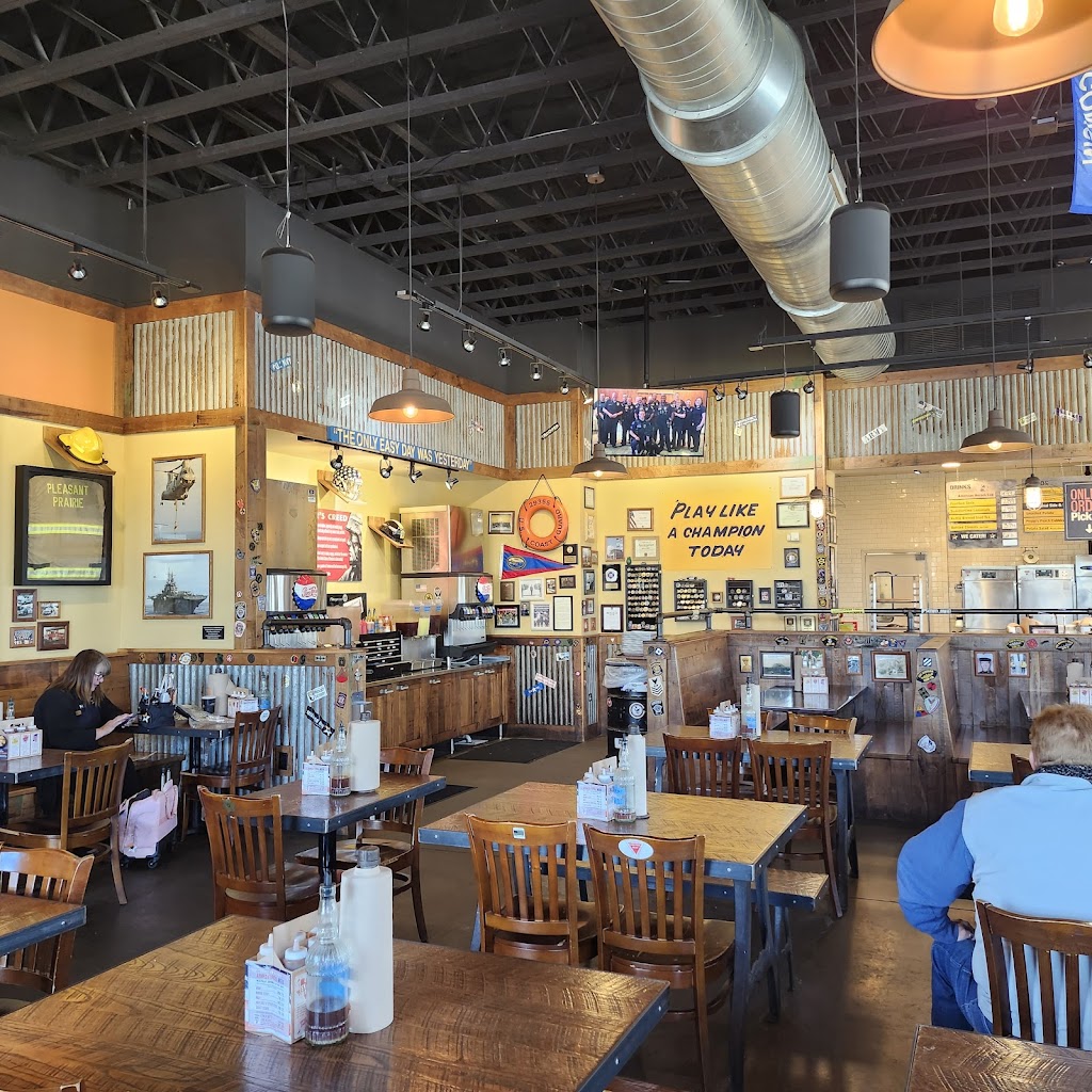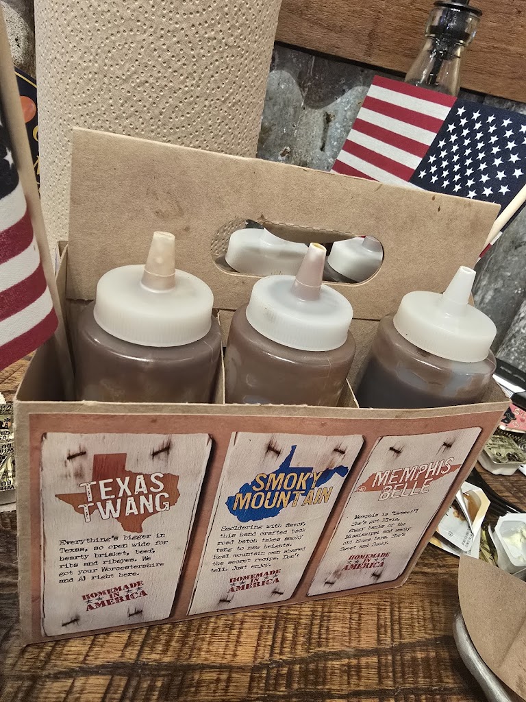 This place is awesome. The food is best BBQ and sides, I think in the area hands down. The service is outstanding, and the decoration on the wall that honors all military and public service workers is touching. I had the 3 meat combo moist brisket cooked to perfection, jalapeño sausage with cheese OMG, and seasonal huge grilled shrimp to die for. You get 2 sides, which I had Maggie's Mac and cheese and baked beans with brisket and cornbread. The sides are made from scratch, and you can tell there's nothing but love put into the overall menu. I'll be going back regularly. There are, I think, 9 different sauces to choose from, and if you're not sure what you like, they give you a couple of each with your order. My favorite was the smoky mountain and Memphis belle.