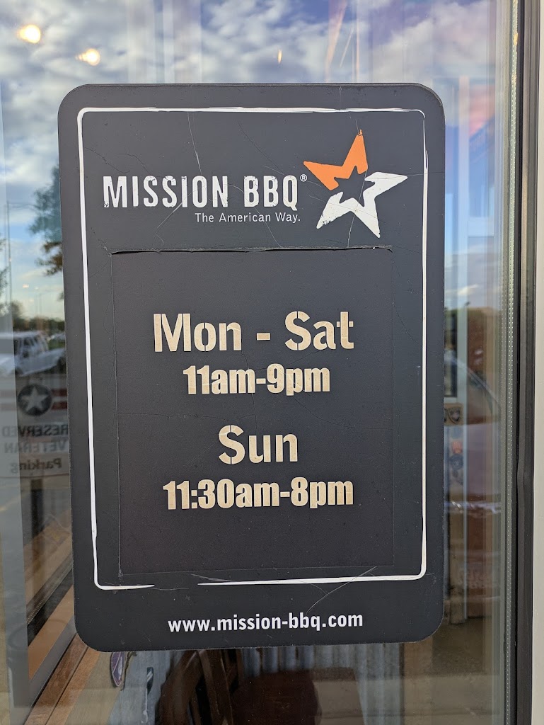 We our not from the area, decided to try Mission Barbeque, we were welcomed by the staff with a smile and an explanation of the menu , they also checked on us and told us to let them know if we need anything! Very friendly and personable staff! The food was amazing, best beef brisket sandwich and Mac and cheese We ever had!