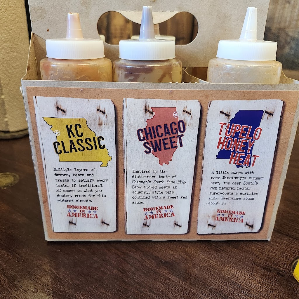 My new favorite barbecue place. Stopped in for my first time and they gave me a free strawberry shortcake. moist brisket sandwich is terrific. Cashier was super patient and explaining the menu to me and they have six sauces you can try!! Texas and Kansas are my favorite. At noon every day they stop and sing the national anthem. fabulous