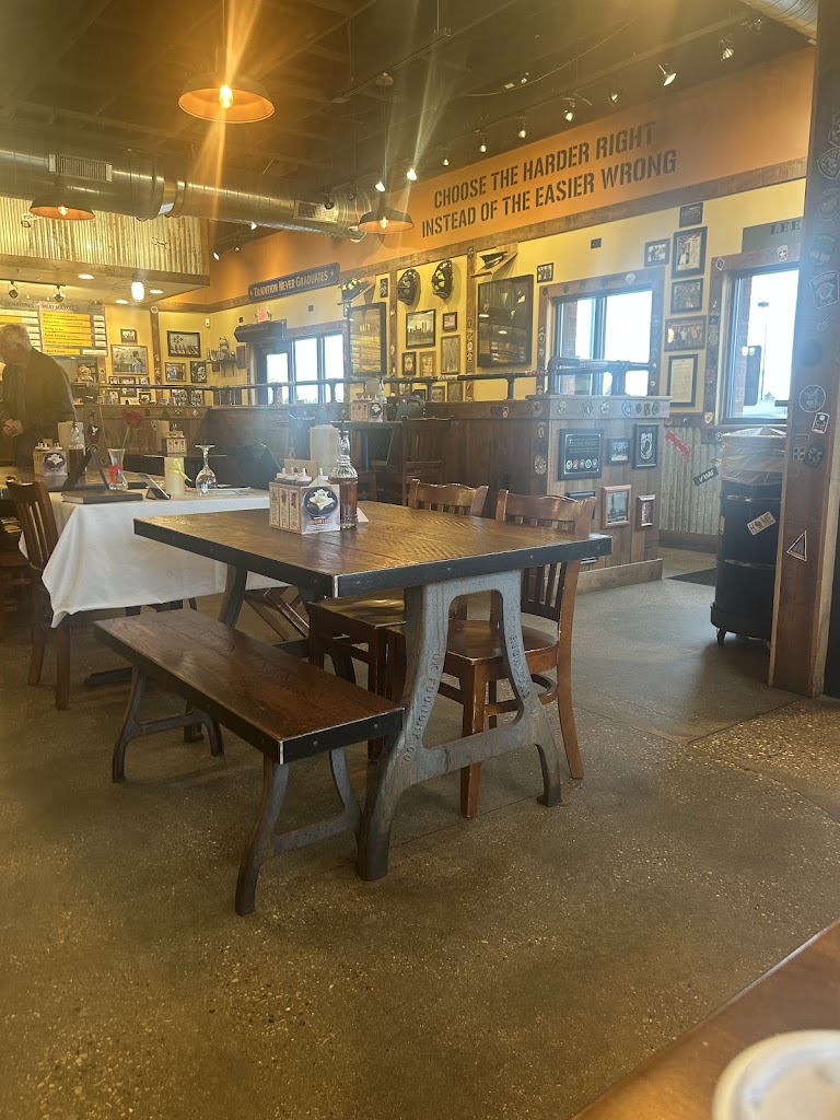 Veteran-friendly facilities. The national anthem is played at noon. Great bbq. Recommend.