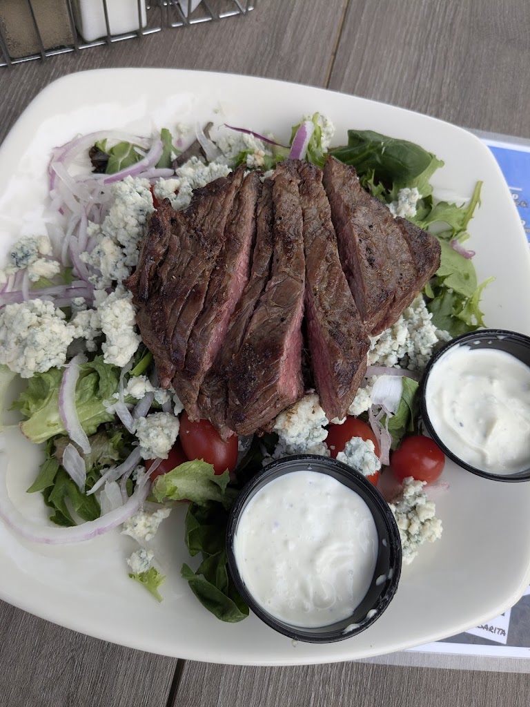 First time we went I had the fish sandwich. It was just okay. The second time I had the prime rib sandwich. It was a full piece of prime rib on bread. It was great! Service has been excellent both times and the beer is cold. Great location on the lake and the second visit included live music. Definitely recommend if you are in the area.