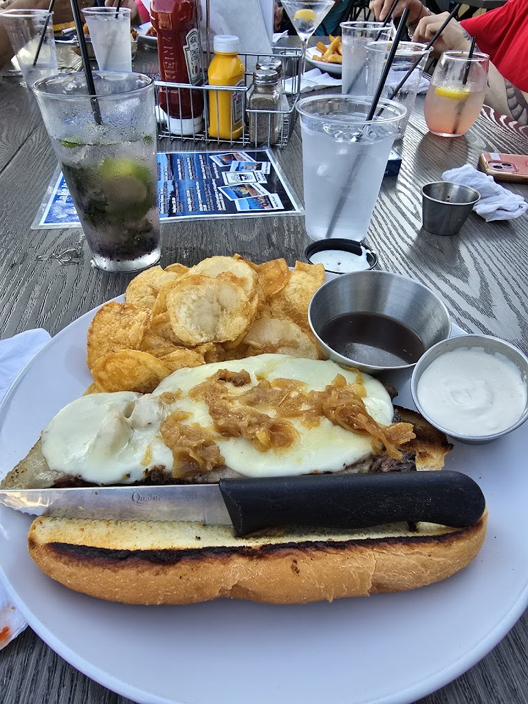 staff was friendly, great sounding band playing on the deck outside, prime rib sandwich was delicious, definitely will be going back