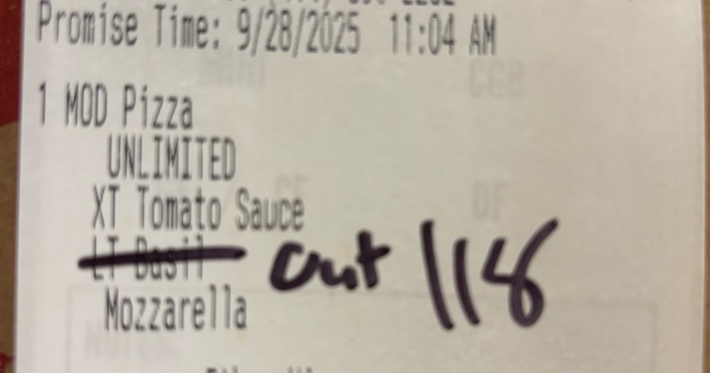 I avoided posting a new review because I have always liked MODs but an experience on 8/25/22 has left a bad taste in my mouth and the company doesn't seem to care. I contacted the store because I thought they should address the issues. They never responded! We arrived at MODs at about 9:20. There was one person at the counter finishing ordering 1 pizza and starting the 2nd pizza. The person behind the counter finished that order put the pizzas in the oven and walked away from the counter. A few minutes later he returned, asked us what we were ordering, and walked away again. After a few more minutes, he returned and started prepping crusts. I thought he might start to help me but I was wrong. Without a word, he started making an internet order. Another guy came in from outside and started talking with the woman manning the oven. Finally, after over 15 minutes the original guy behind the counter started to help me, but then again walked away. The guy from outside came over to help. Problem was, that he never washed his hands after coming in, but at least he put gloves on. I didn't say anything because I figured at least he had gloves on. In all, it took over 20 minutes to place our order. Not a word like, "Sorry for the delay", or "just a minute" or "I'll be right back".