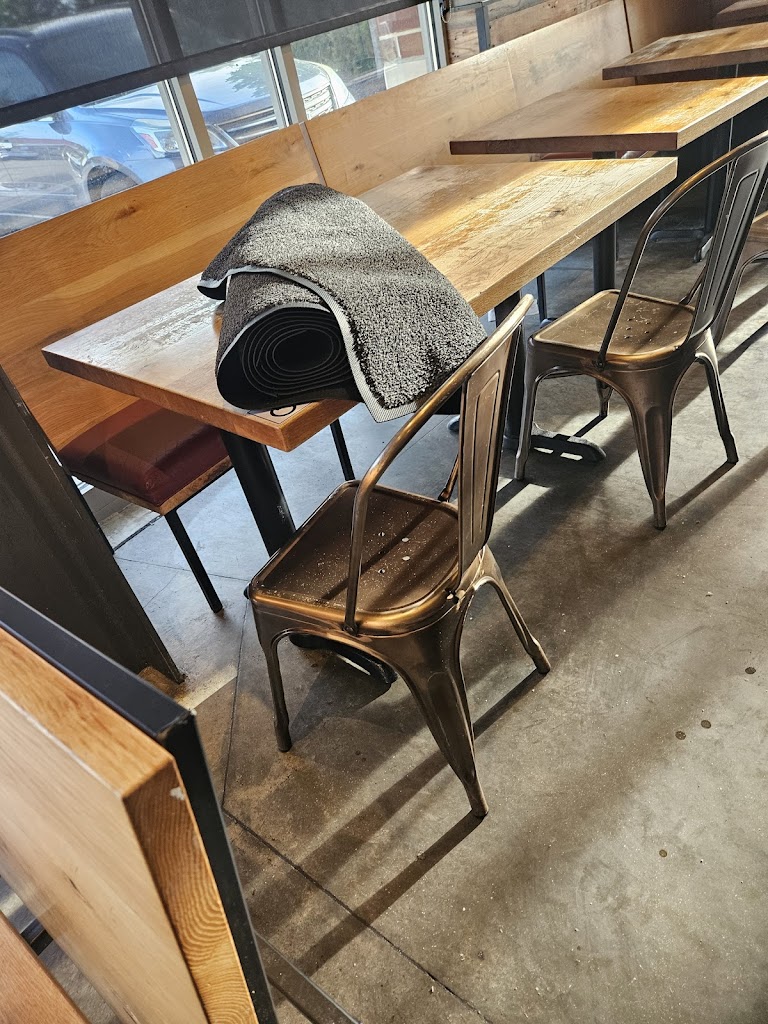 I didn't receive a response from a manager. So here it is. Rugs on top of tables at 6pm. Very unsanitary. Employee wearing a furry tail while working. How is that allowed to wear in a food place? It brushes up against everything. The person wears it all day so it comes in contact with everything hes touching. Why can't people just wear the stupid uniform as is, and stop being difficult with added crap. Because im sure this is not the the first time this guy wore this or was addressed about it. Does the tail wear a hair net?
