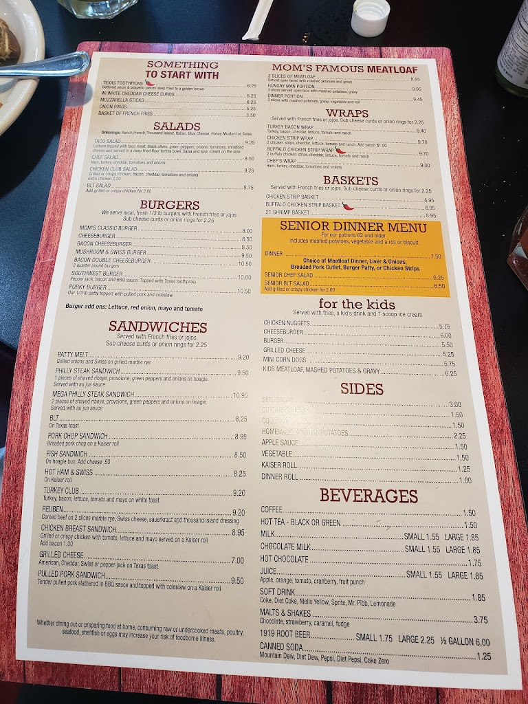 Mom's is the best, service and personnel are pretty much always on point. They treat you like you are they're neighbor or family because in this small town that's usually the case.