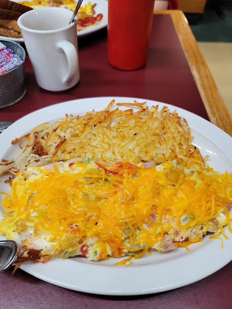 Super friendly wait staff. Quick on bringing us our meals. The omelettes were huge and full of the toppings we had ordered . We were pleasantly surprised to find such a great meal in a tiny town!