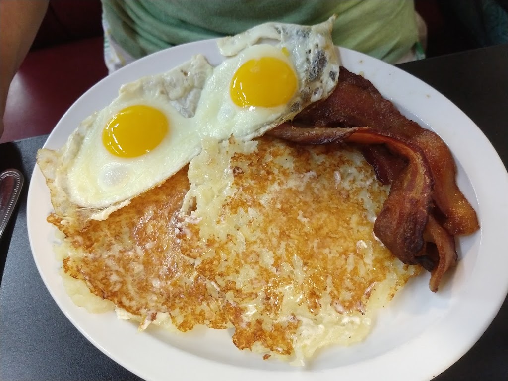 Great small town restaurant. Spacious, variety of seating options for friends, families - booths, bar and table/chair seating. Able to accommodate a larger group, single or two. The bacon, eggs and potato pancakes were made to perfection. All around friendly and courteous service!