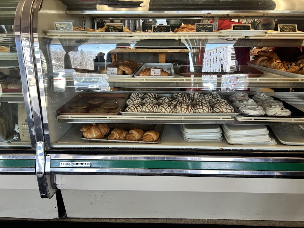 I spied the Monona Bakery & Eatery as I was trying to get some drapes pressed at the nearby dry cleaners, which didn't pan out. It was b4 11am on a Saturday & we could use a pastry with breakfast so I stopped in. Folks were gathered outside eating at tables & as I entered, and others eating at tables inside. The pastry display cases are right inside the front door so I was immediately enticed! Two servers asked to help me right away & I could order immediately. I ordered two raspbery / cheese croissants & 1 blueberry scone, to go. We ate the croissants that morning & shared the scone, two days later, (reheated for 30 seconds at power level 4) and it was really delicious & had just the right moisture level.