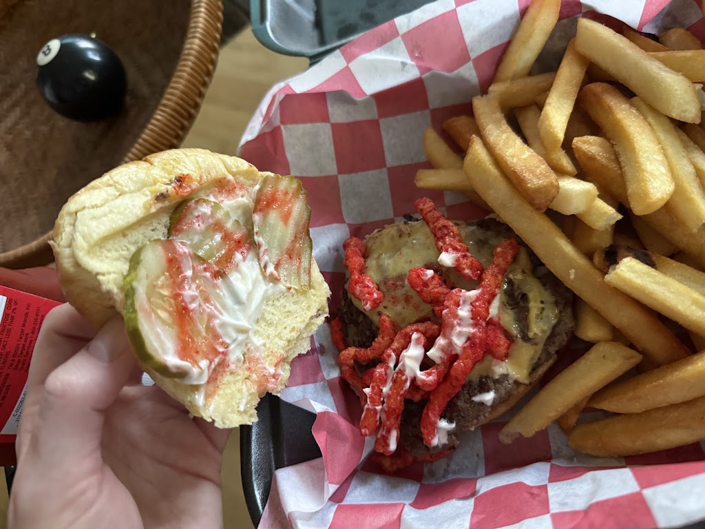I like supporting small businesses and hate to be a hater, but my experience here was unfortunately pretty lackluster. I ordered the hot Cheeto burger, and it looked nothing like the menu photo. It had no hot Cheeto dust on the bun, had a sad handful of Cheetos on the burger, the Cheetos were soggy or stale, the bun seemed soggy, and the burger was overdone. It did have good flavor. The fries were also underdone. For the price of this meal and for how long it took to make, this was super disappointing.