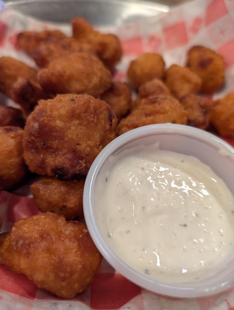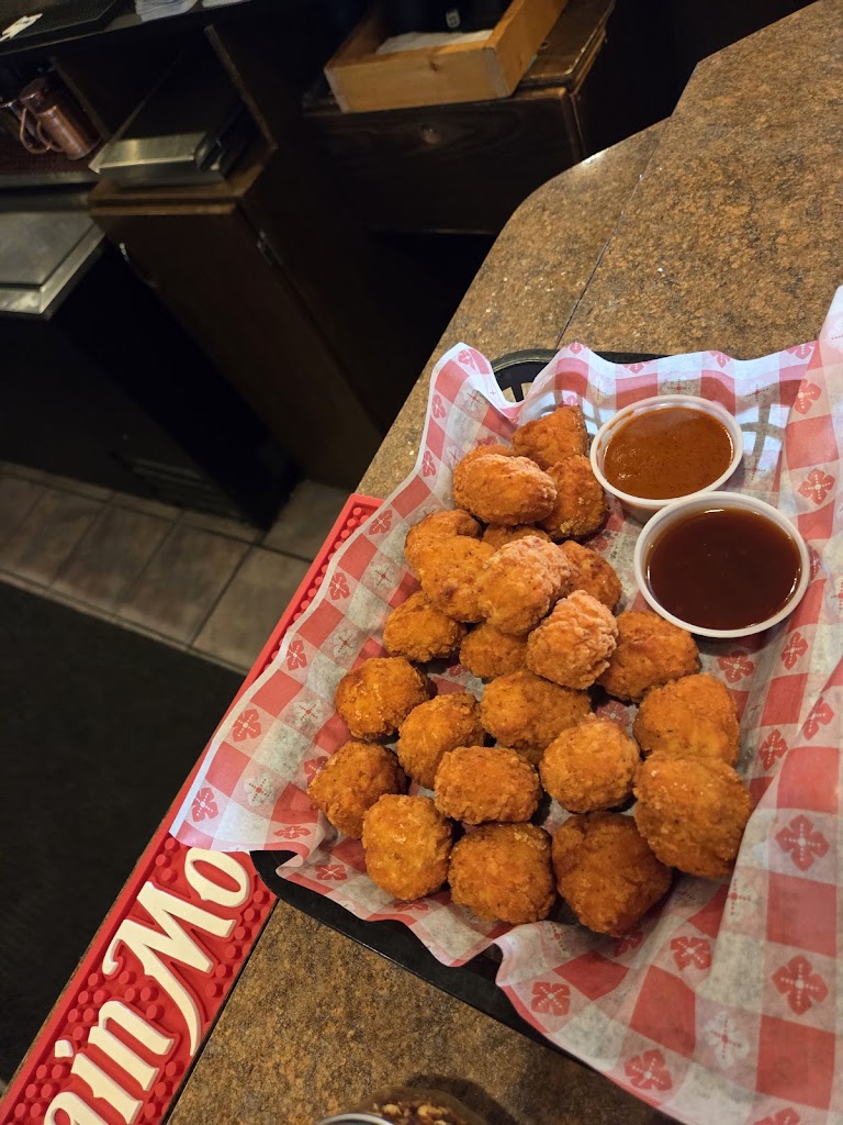 Ordered a burger cooked medium and it was served rare, it was also very bland. Also ordered “white” cheese curds that were yellow curds instead. The kids meal didn’t come with fries. Overall poor experience.