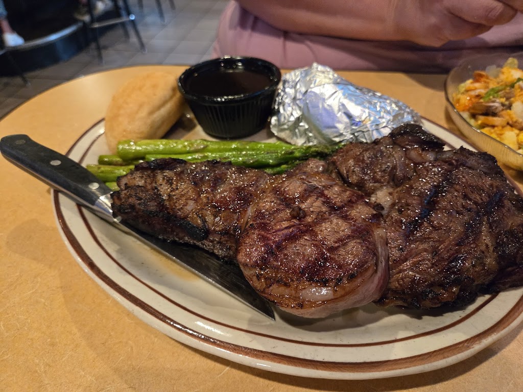 Was disappointed in being told at 625pm that they were out of prime rib while already halfway through the salad bar. We chose to stay after being seated. Ordered a rib eye rare, I was sad when it came over medium closer to well. Wait staff visited the table twice during meal once to serve and again to give bill. We will not visit again. I had high hopes being it was close to home but will spend our money somewhere else.