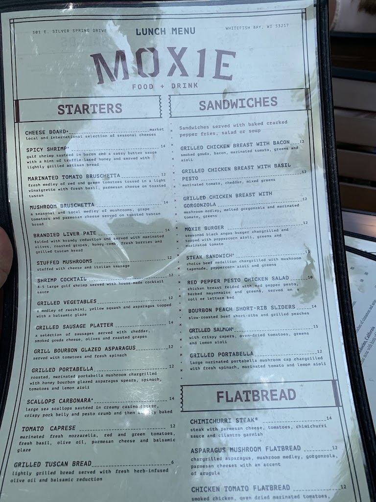 My husband and I had a wonderful New Year’s Eve dinner at Moxie’s. I had the butternut squash ravioli and my husband had salmon. Both meals were excellent! Our server, Michael, was very pleasant and attentive. We will be back!