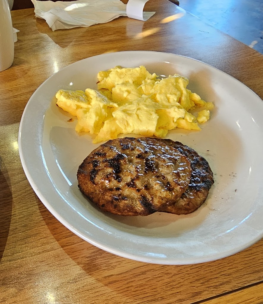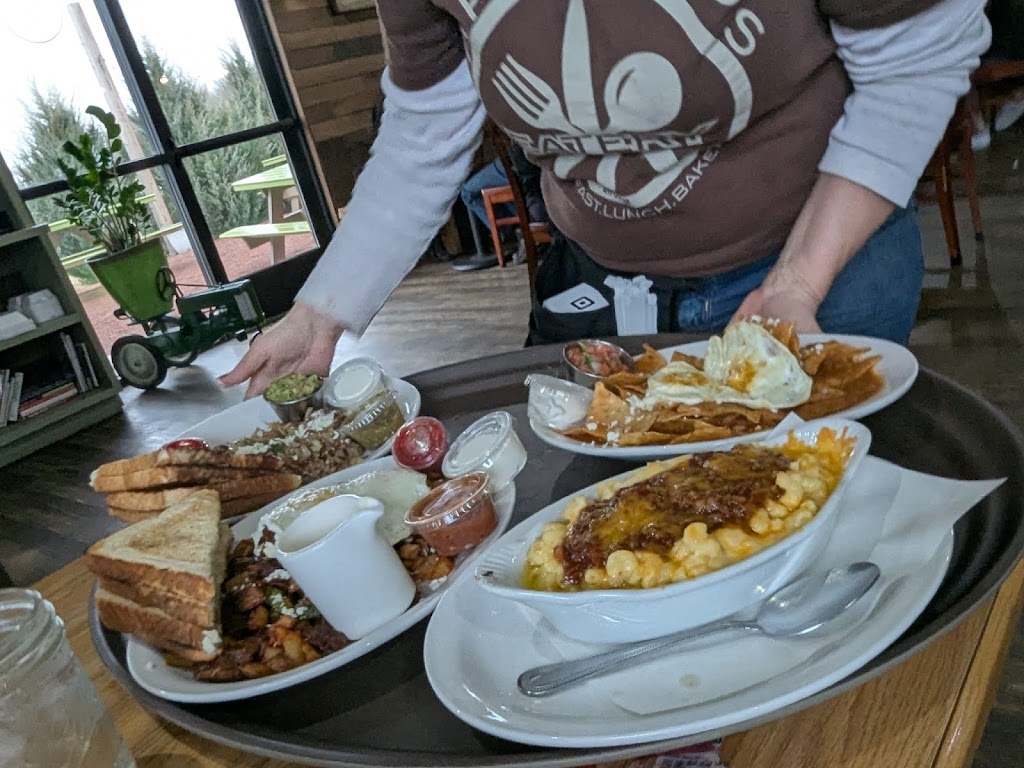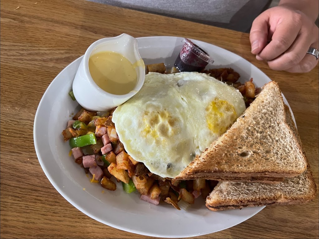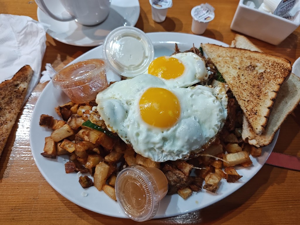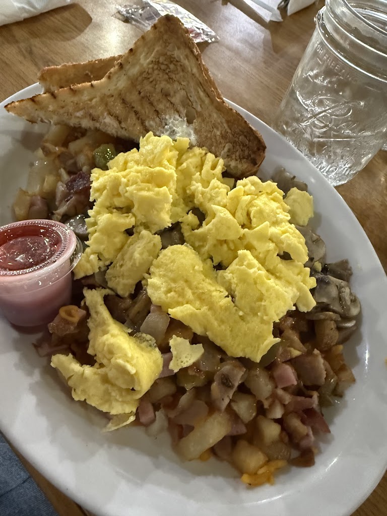 My husband loved his skillet and his toast with homemade jam. The mudslide coffee was delicious and made me sad that I quit drinking caffeine.