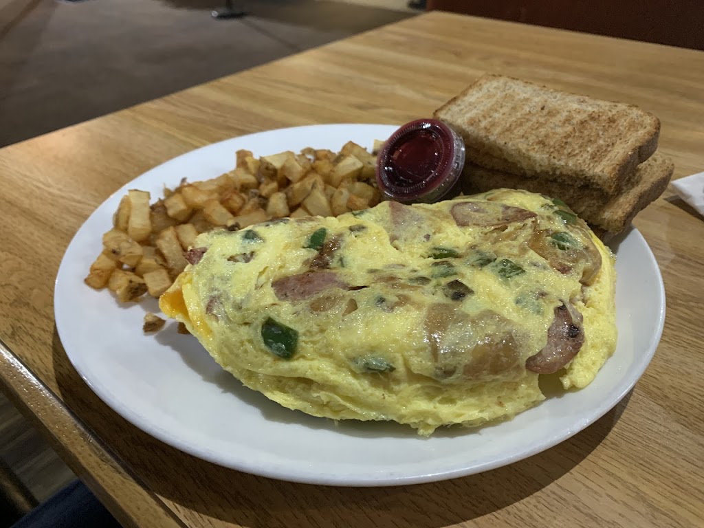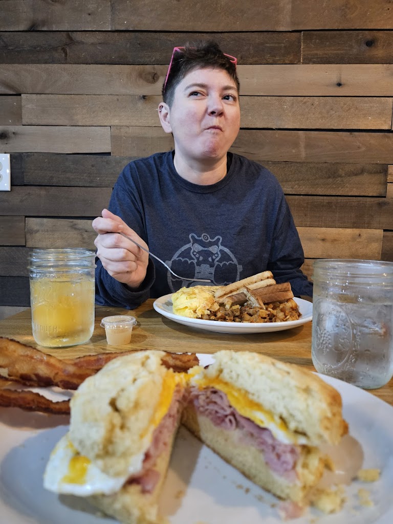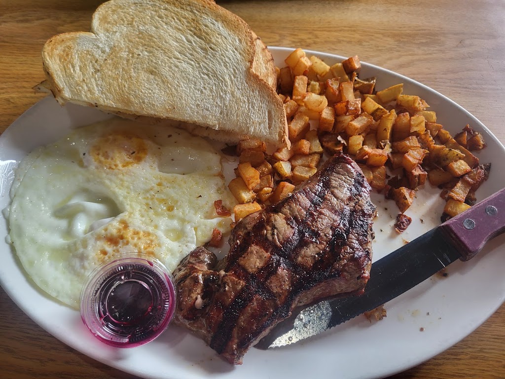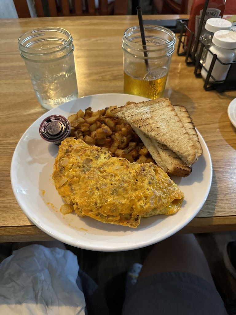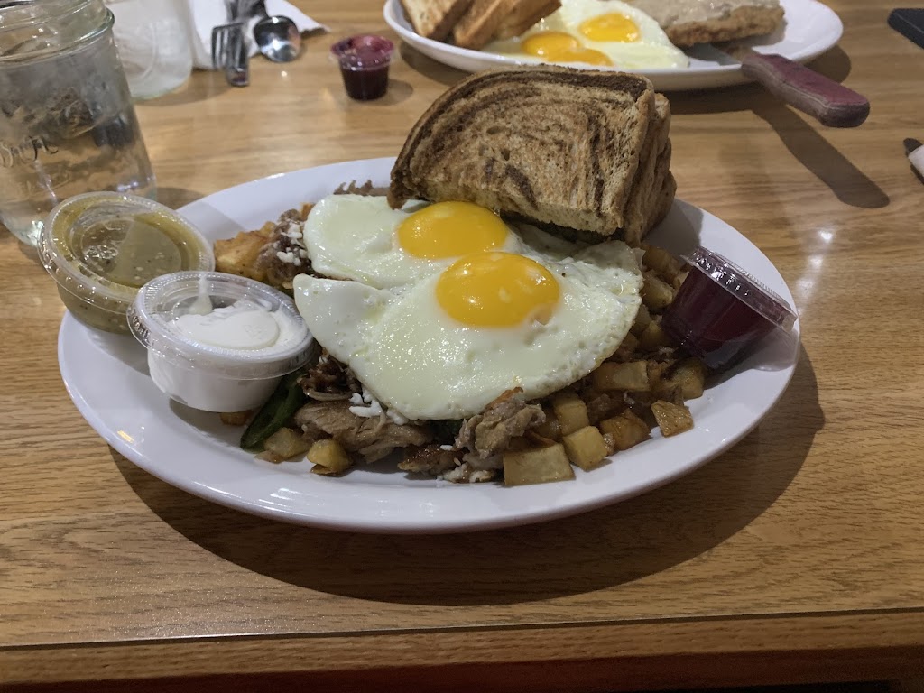 My husband loved his skillet and his toast with homemade jam. The mudslide coffee was delicious and made me sad that I quit drinking caffeine.