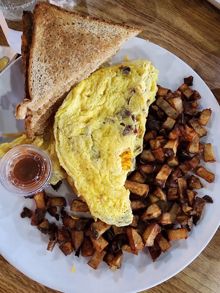 Get the banana bread French toast! Life changing 🙌 And cream cheese in the omlets - my new must have! Valerie took amazing care of us, she was fast, friendly and funny. Glad we stopped in ❤️ 🥚 🥓 🍳