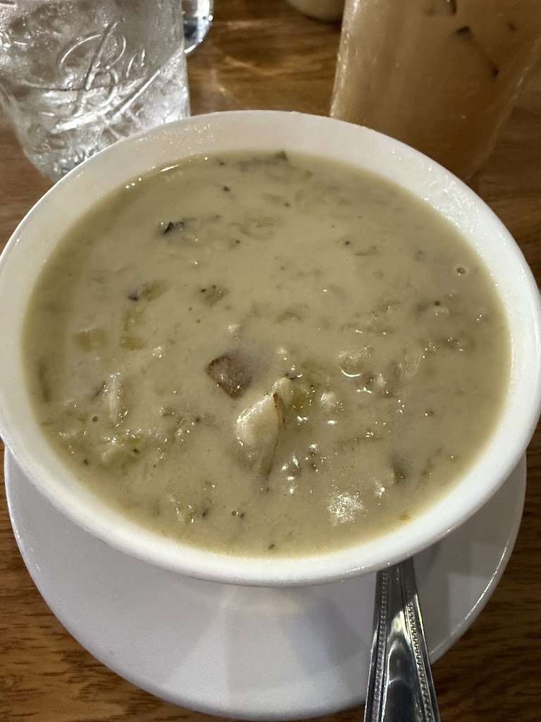 Pretty decent. The white chocolate macaroon mocha was great! I don't usually order soup, but I'm so glad I did! The potato leek was delicious! Great flavor. The country skillet was average. I'm not a huge fan of the really small potatoes and they really loaded on the mushrooms which became the dominating flavor. The desserts in the case up front looked very tasty but I didn't order any. I'd go back and would just order something different.