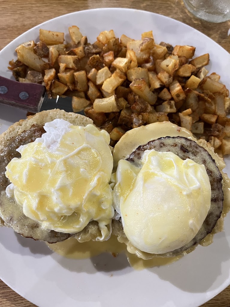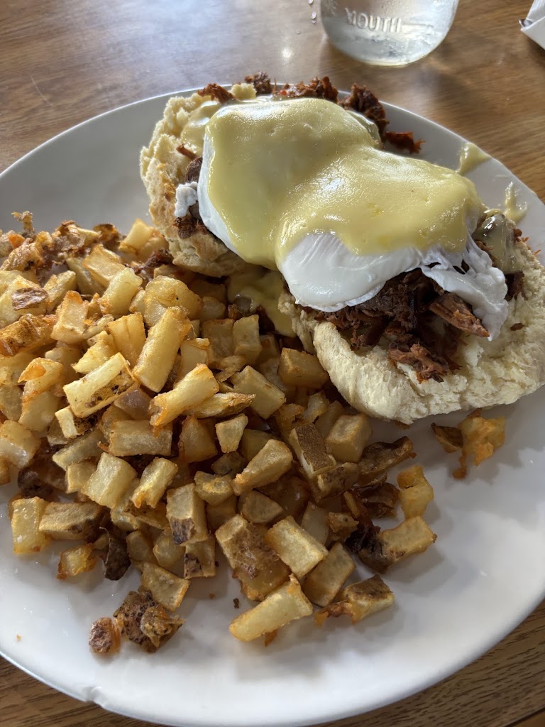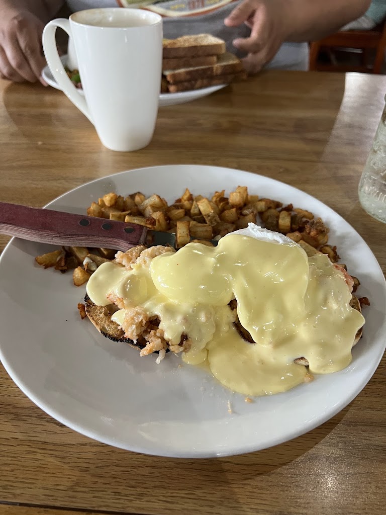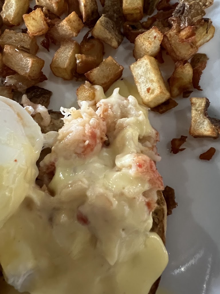The food came out very fast and was the best breakfast I have had in a very long time! I got the lobster Benedict. The eggs were perfect, the hollandaise was creamy and delicious, the English muffin was cooked to perfection (I feel that other restaurants usually serve a sad and undercooked English muffin with Benedict’s). The lobster was fabulous. The breakfast potatoes?!? So good! Crispy and delicious. The best breakfast potatoes I’ve ever had.