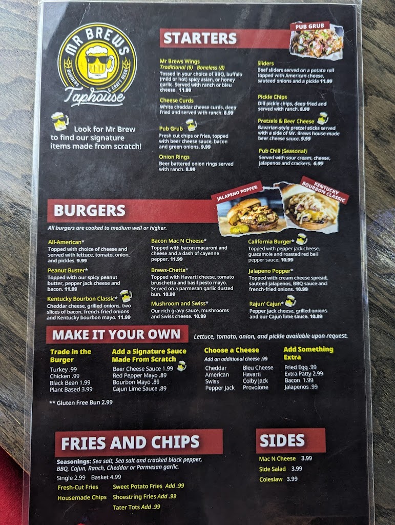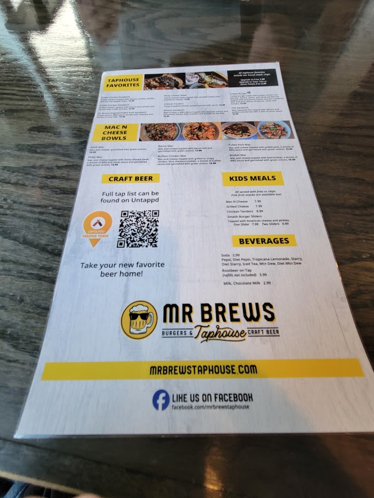 Mr. Brews Taphouse is a crowd favorite with our Tuesday night trivia league - and has been for years. 💕The food, service and atmosphere is always top notch (holla to Erica, Brad and Tati). Excellent location for both small and large groups - with a stellar dog friendly patio in the summer (so Rover can enjoy the atmosphere too)! Meal selection rocks - there is something for everyone. Hubby doesn't eat meat and I do - so I can have my steak protein bowl while he enjoys one of their many vegetarian options - paired with a massive tap list of exquisite craft brews! 🍻🐾💕