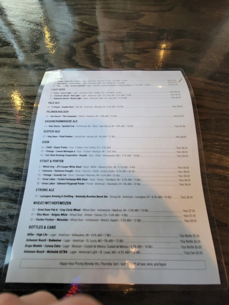 Bonito lugar, ambiente de wisconsin. La hamburguesa kentucky bourbon classic es rica!