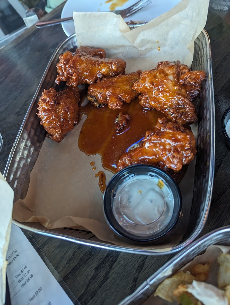 The good: The food was excellent. The wings and burgers were extremely well prepared and flavorful. The atmosphere was also very nice. I will need to get there in the summer when they have the patio open!