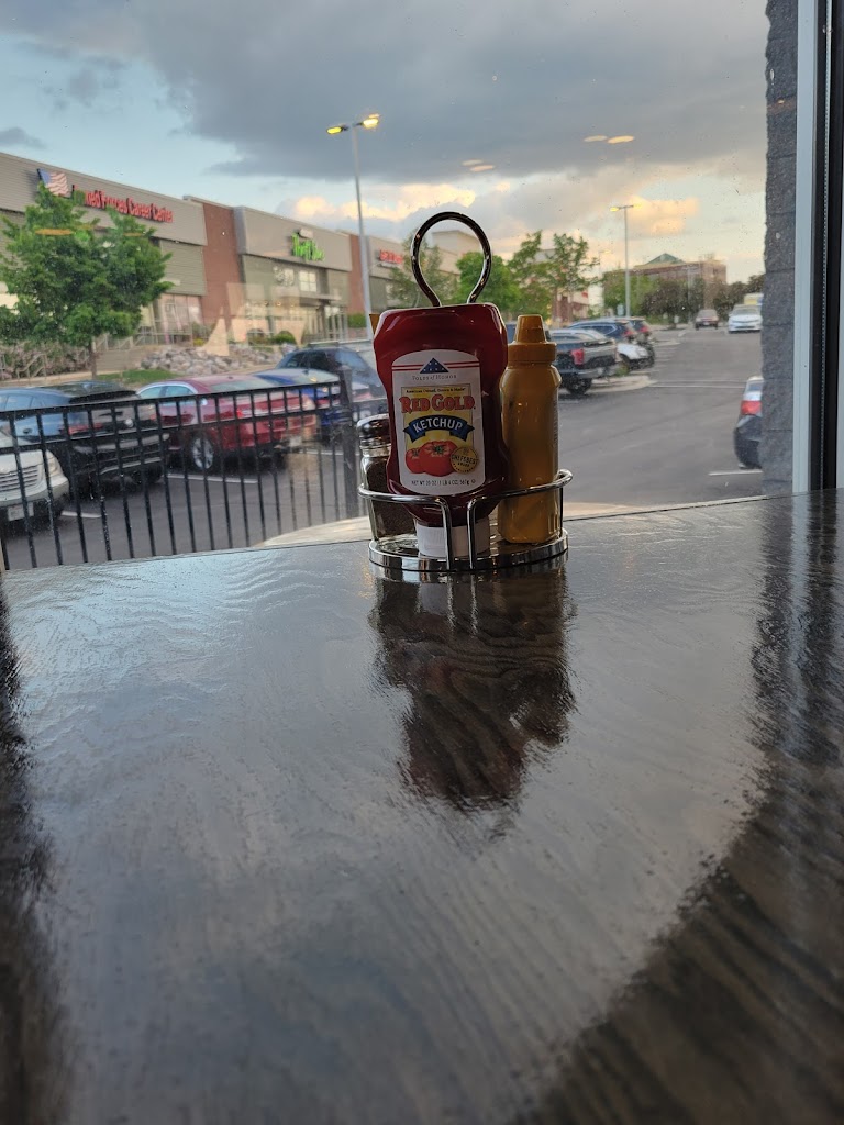 Stopped for dinner on the "dog friendly patio" with my dog. We were the only ones on the patio. the server brought a menu for me, and I ordered the Cali burger with sweet potato fries. The food was good and cane our relatively quick. There was a discrepancy in the menu price price, and what I paid. Online, it also says $11.99(4 months ago). Sweet potato fries were $2.49, and the burger was $14.49. Why was there a difference? Now, for the server, she was friendly to me. My dog, on the other hand? Didn't even acknowledge him or ask if he was thirsty! Maybe not the servers fault as it wasn't her choice to advertise "dog friendly" and be scared. My dog is 45lbs and friendly.