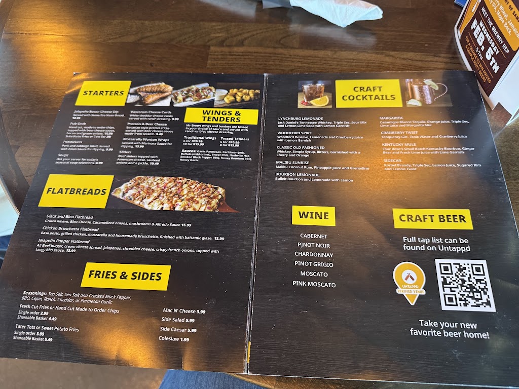 Excellent place to watch a game! Waitstaff is quick and attentive. Good food and theoretically a great selection of high-end beers. There is room for improvement, however. Of the four beers that my table ordered from the list, two of them were kicked (empty). It is nearly 24hrs later and the Untappd website does not yet reflect this status. I would like to visit Mr Brews based on real-time offerings, but the published list can not be relied upon.