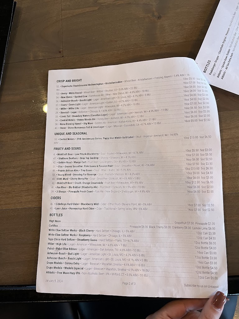 Great beer selection. Food is fantastic especially for the price. Great staff. Nice layout. A “must visit” in Oshkosh. Live music on the patio was perfect.