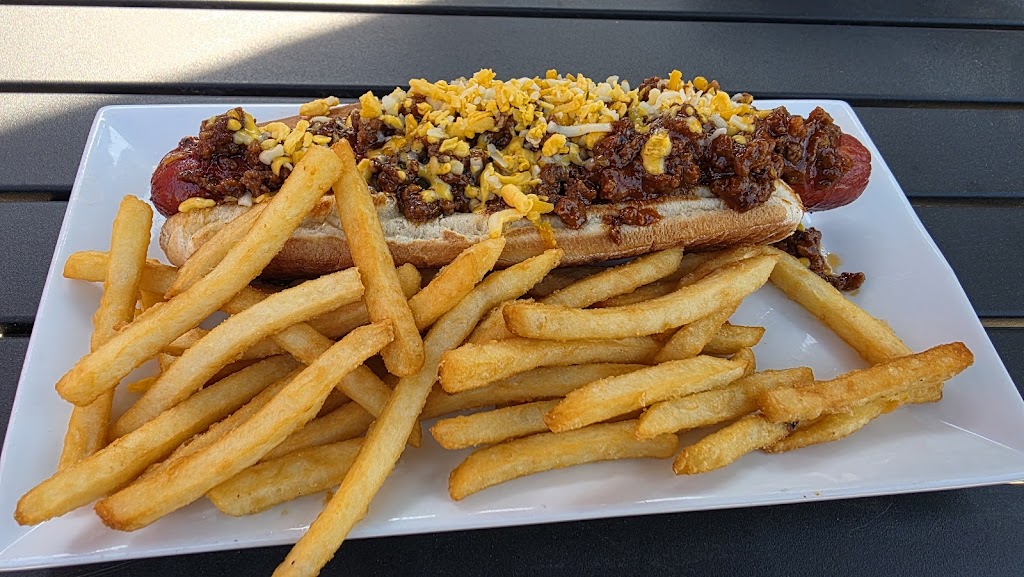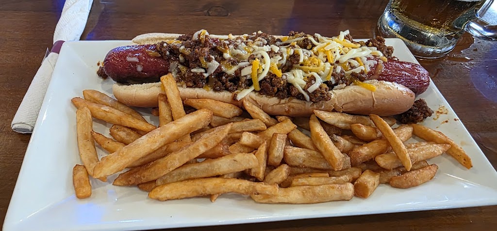 Had the nachos which were good. Almost a meal for the 2 of us. A bit fatty from the cheese and ground rib eye. Jalapeños extra (.99 cents) but fresh. Salsa extra (also .99 cents) and is your basic canned/bottled salsa. Asked for hot sauce since no spicier salsa available. Ate at the bar and had good service. My husband likes chili with his hotdogs but not on menu. No soup option on menu. A lot of sports bar type foods available. Some basic vegetarian options.