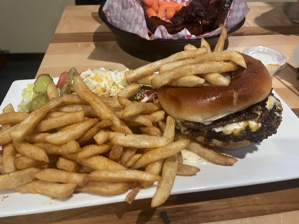 Burger was good but definitely over priced for what it is. Meat on nachos was so salty, could only finish maybe under a half of it and I probably had my salt intake for 4 days. Would go back if they ease up on the salt and lower their prices, gotten on par and better burgers for cheaper. Kids meals are also $10 and up with no drink included. Im all for supporting local, but you can't act like a 4 star restaurant when you're a sports pub. Service seemed likenit was going to be good when seated by host but waitress was slow to come to table, no napkins or plates for our appetizers, no refills offered; she was just there doing mininal.