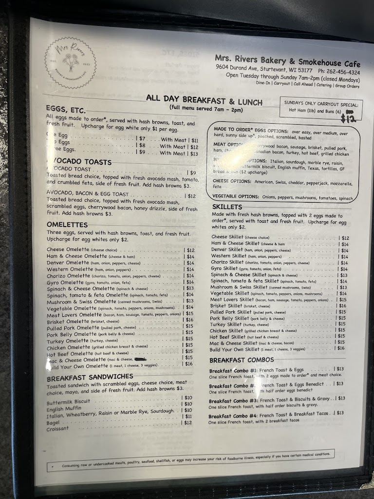 There’s a new place in town you must visit. Mrs. Rivers Bakery & Smokehouse Cafe, 9404 Durand Avenue. This place does not disappoint. Delicious made from scratch bakery & pies to tender biscuits and gravy and pork belly on a breakfast sandwich. Nice menu selection, friendly atmosphere, and delicious food what more do you need! She will not disappoint!