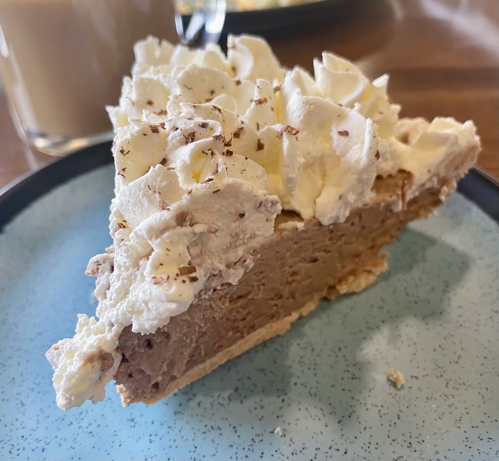 Sadly I did not take a photo of our meals. We had an avocado toast and a spinach,feta and tomato omelette. Both were very good. The tzatziki sauce was amazing. The staff were very patient with our high maintenance questions and requests, we got multiple pie slices to go, delivered to friends and family and everyone loved them!! So far the French silk is my favorite, which is how we found you when we had it at Wells Bros pizza. Super cute little place, good food, excellent pie excellent staff!