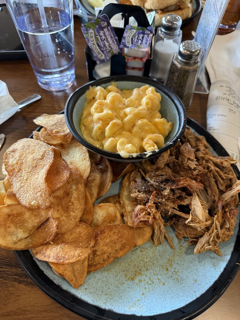 I had got the brisket with macaroni and house chips. Brisket was amazing just a little disappointing with the amount they give you. Mac and cheese wasn’t the best, it kind of gave off a pumpkin taste so it threw me off a little bit but know I know for next time. Chips were alright. I also tried a cappuccino and it wasn't sweet or anything, so that was a let down as well