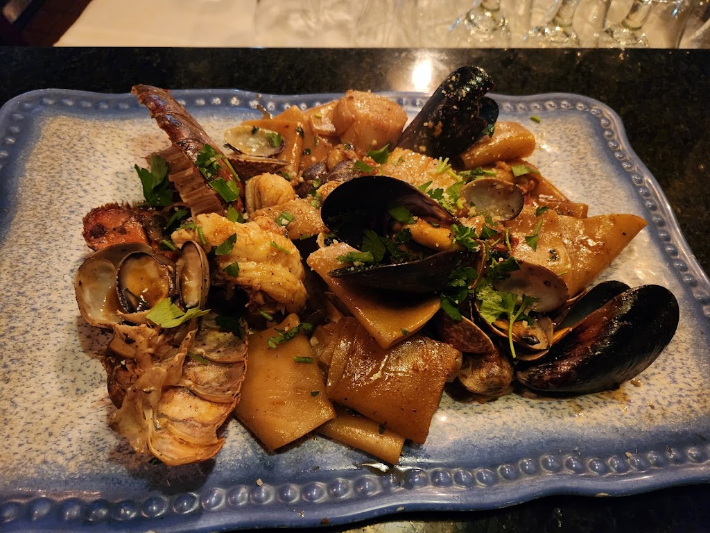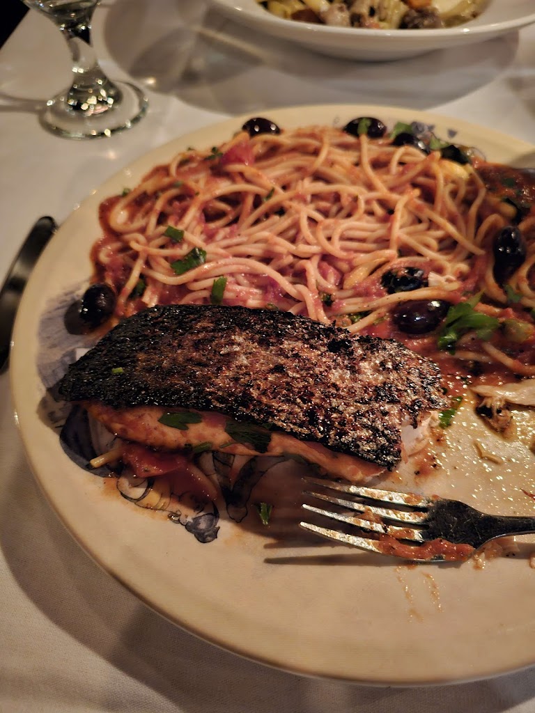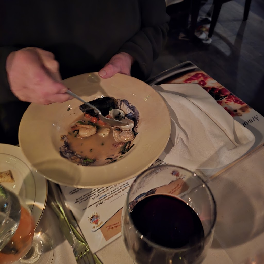 ⚠️ Ask about menu prices before ordering. Tariffs on imported items (like sea bass and calamari) have pushed prices up—but you won’t know until the bill. Our group of 15+ (some kids) paid $2,400 before tip. That included about 3 bottles of wine and other things, but still—at that cost, I expected an exceptional meal. Instead, it was average and forgettable.