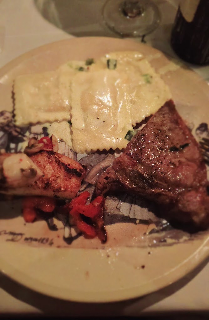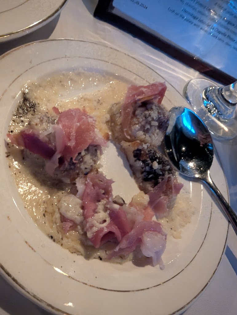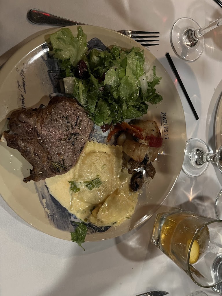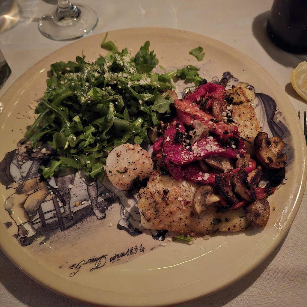 For the price, 2/5. The sea bass was actually good. Pizza was good. Portions were inconsistent across the table. My steak was unremarkable. My nephew’s came out borderline raw. The multicourse setup (caprese, potato dish, calamari, pizza, entrée) sounds like a lot of food right? No, it was not. Portions were modest—and people left unsatisfied.
