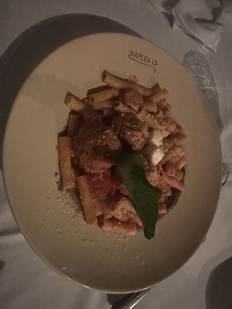 Delicious rigatoni salvatore and sfogliatella for dessert.