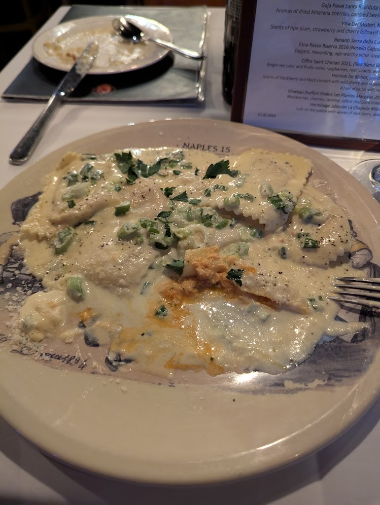 The food is consistently fresh and absolutely delicious. I always order the Ravioli all’Aragosta (lobster ravioli in a white Malvasia crème sauce), which is rich, delicate, and perfectly balanced. My spouse goes for the Linguini Alla Puttanesca with sausage added, and it never disappoints. We always finish with their heavenly Baba paired with Neapolitan cappuccinos, which feels like a little trip to Italy in itself.