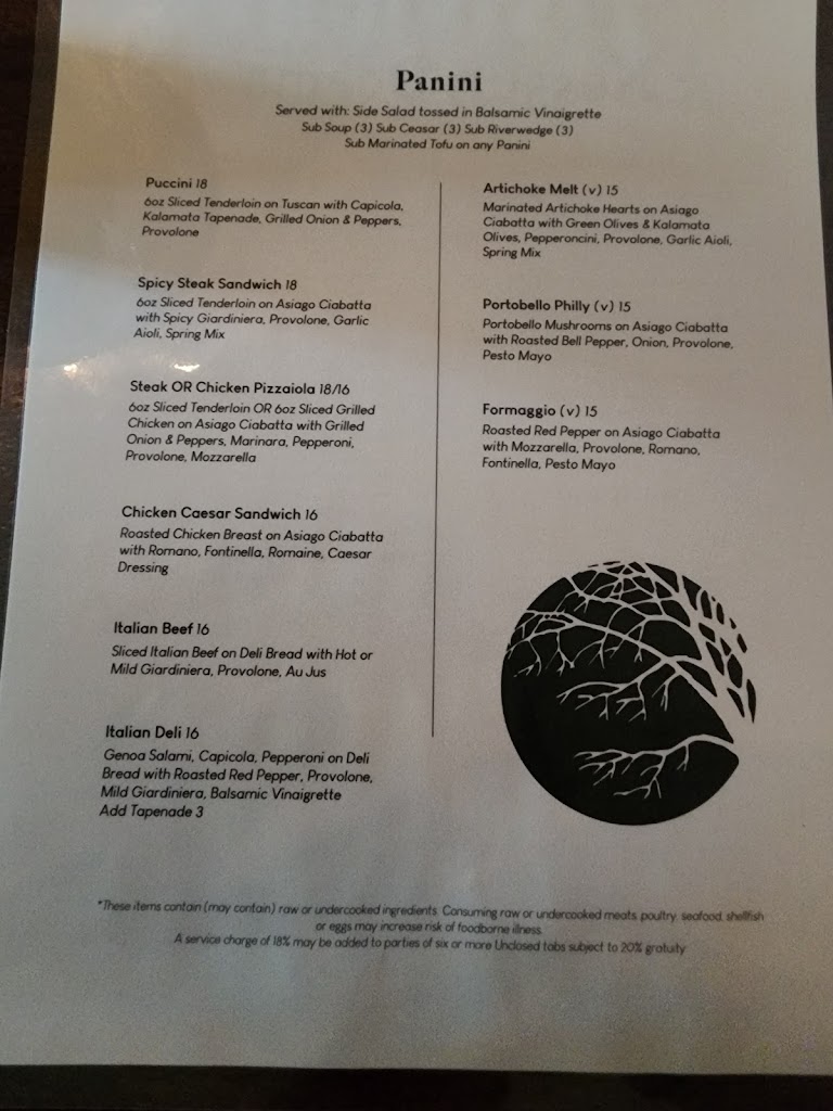 Had an excellent panini came out quibk and delicious. Service was excellent as well.